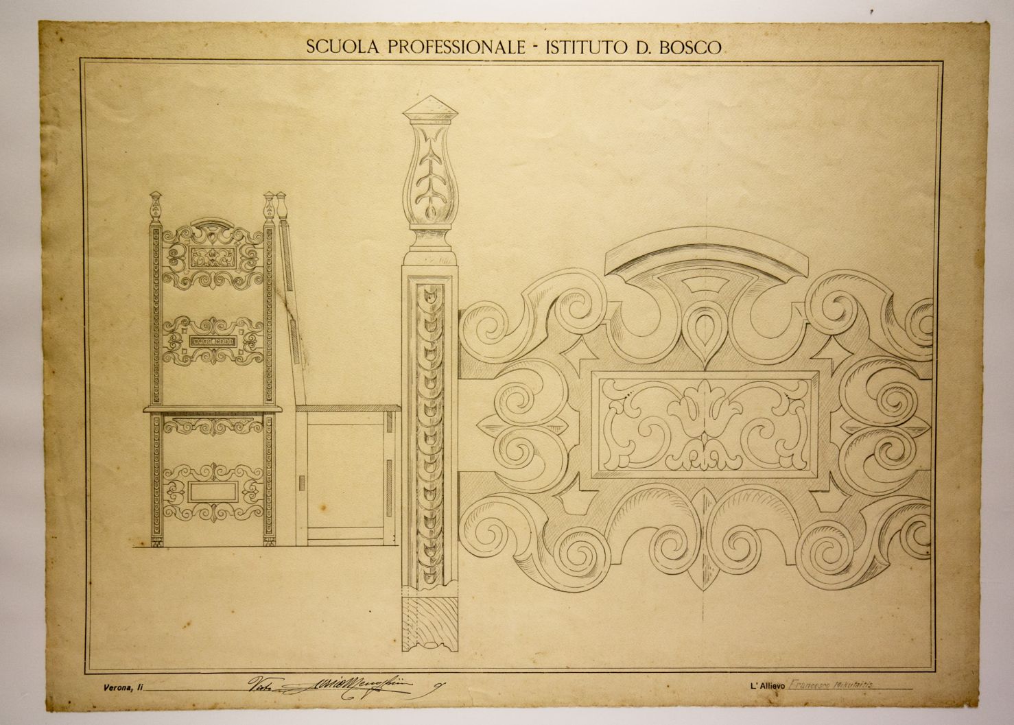 Kėdės ir jos atkaltės brėžinys ar piešinys